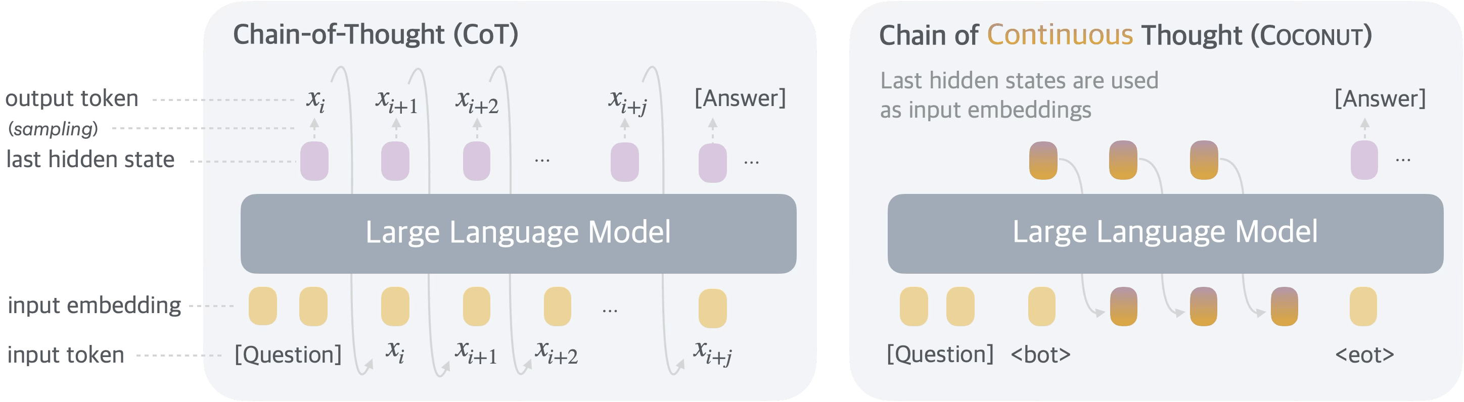 With the recent breakthroughs taking advantage of extensive Chain of Thought (CoT) reasoning in LLMs, there have been many attempts to modify the technique to be even more powerful. One of the natural ideas for improving CoT is to have LLMs perform CoT reasoning in the same latent space that they use for reasoning within a single forward pass, rather than being constrained to the space of possible tokens.
