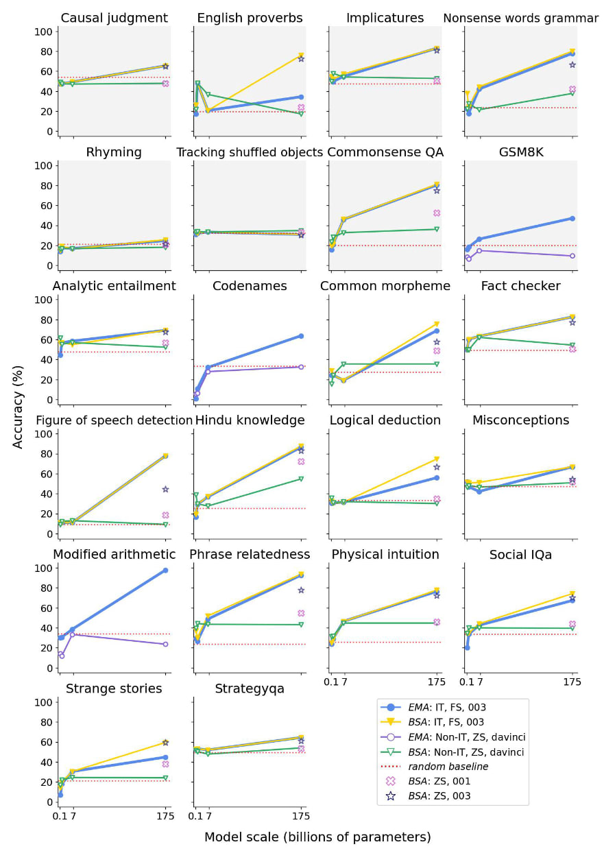 Lu et al. is saying, yes, but that is not because the larger models learned to do those specific tasks better, or learned to become better generic reasoners. It is because the larger models learned to follow instructions better, partly from scaling up, and partly being trained on data sets of instructions and instruction-following ("instruction tuning").