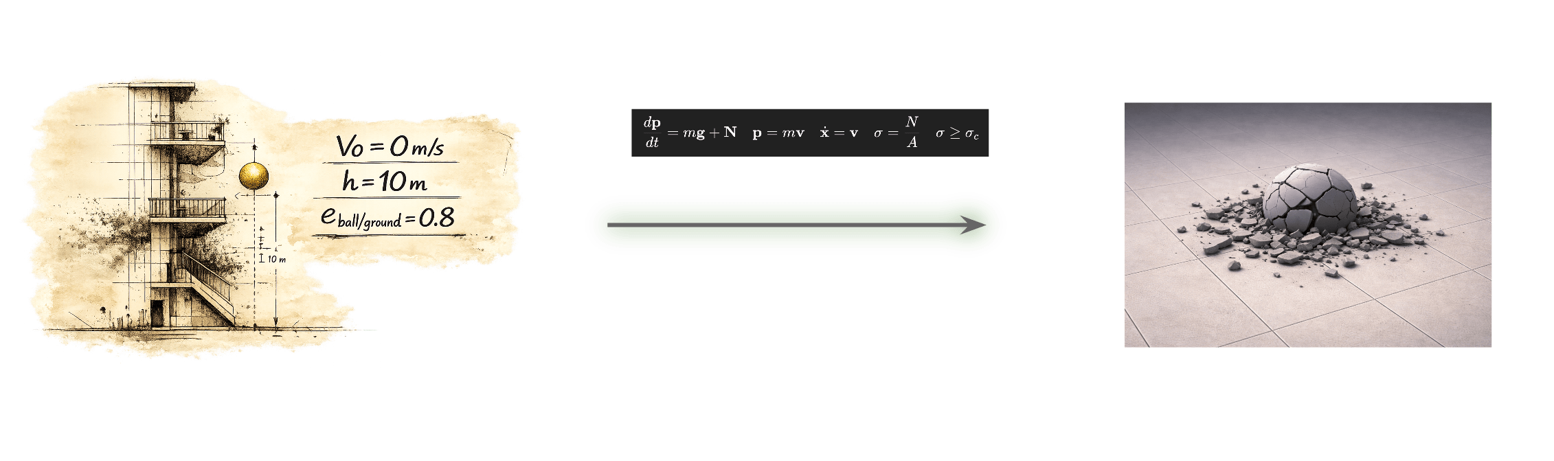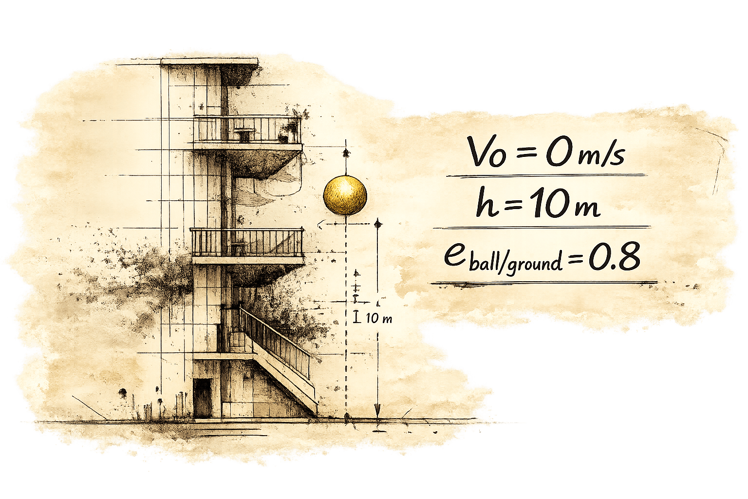 Setting: This encompasses the initial conditions of our physical system, such as the building's height, the materials of the ball and the ground, and the initial positions and velocities.