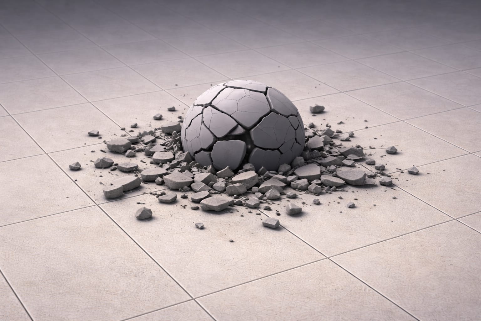Our chosen physical model does not account for air drag so we (wrongly) predict that the ball will shatter