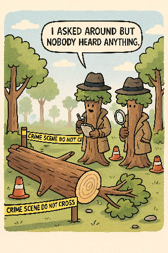 So we ask Silas and Loudius to register their predictions. We ask Silas: "If we place sensitive measuring equipment in the forest, will it detect compression waves from the falling tree?" He says, "Of course it will, but that's not what a 'sound' is. A sound is when a person experiences an auditory sensation."