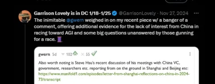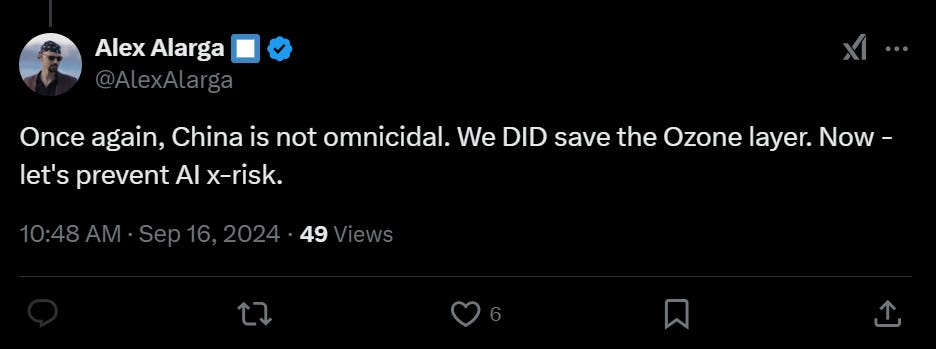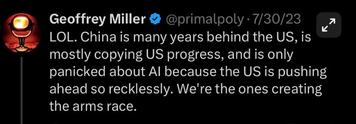 "China has neither the resources nor any interest in competing with the US on developing artificial general intelligence" = @Eva_B
