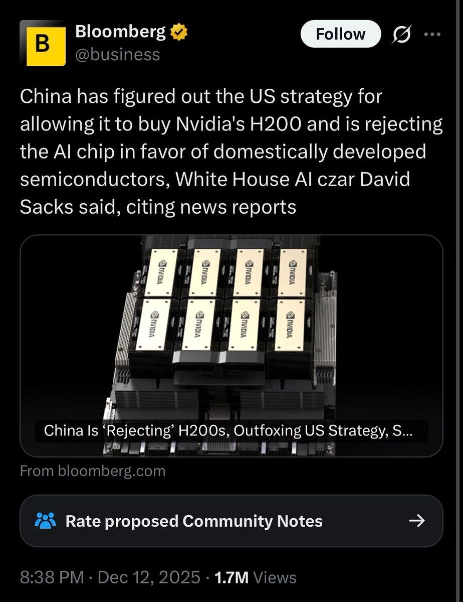 David Sacks and others falsely claimed that allowing H200 sales to China was fine because the Chinese were rejecting the sales.