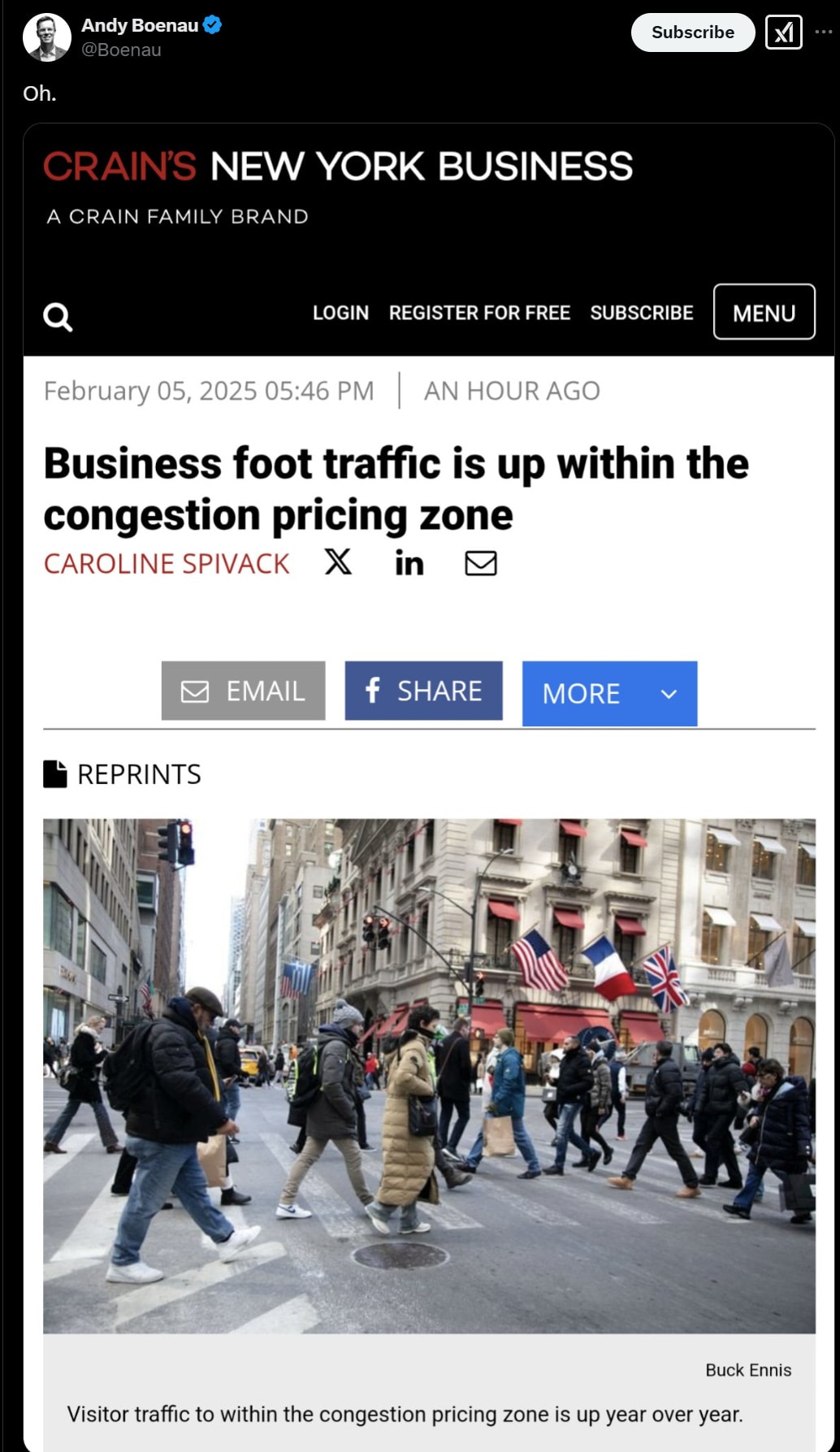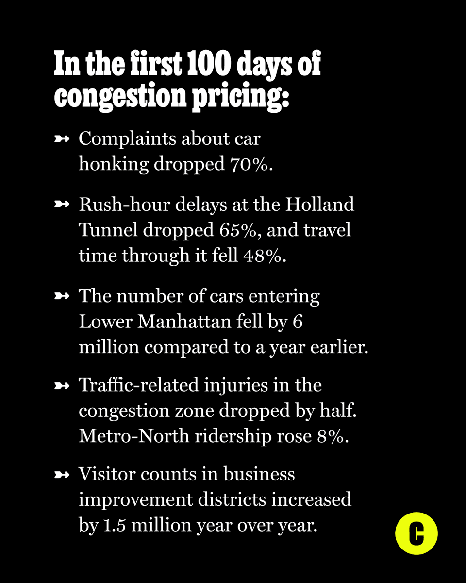 I’ll start out with various victory laps on the awesomeness that is New York City Congestion pricing, which should hopefully now be a settled matter, then do a survey of everything else.