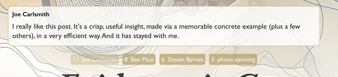 The LessWrong Review runs every year to select the posts that have most stood the test of time. This post is not yet eligible for review, but will be at the end of 2025. The top fifty or so posts are featured prominently on the site throughout the year.