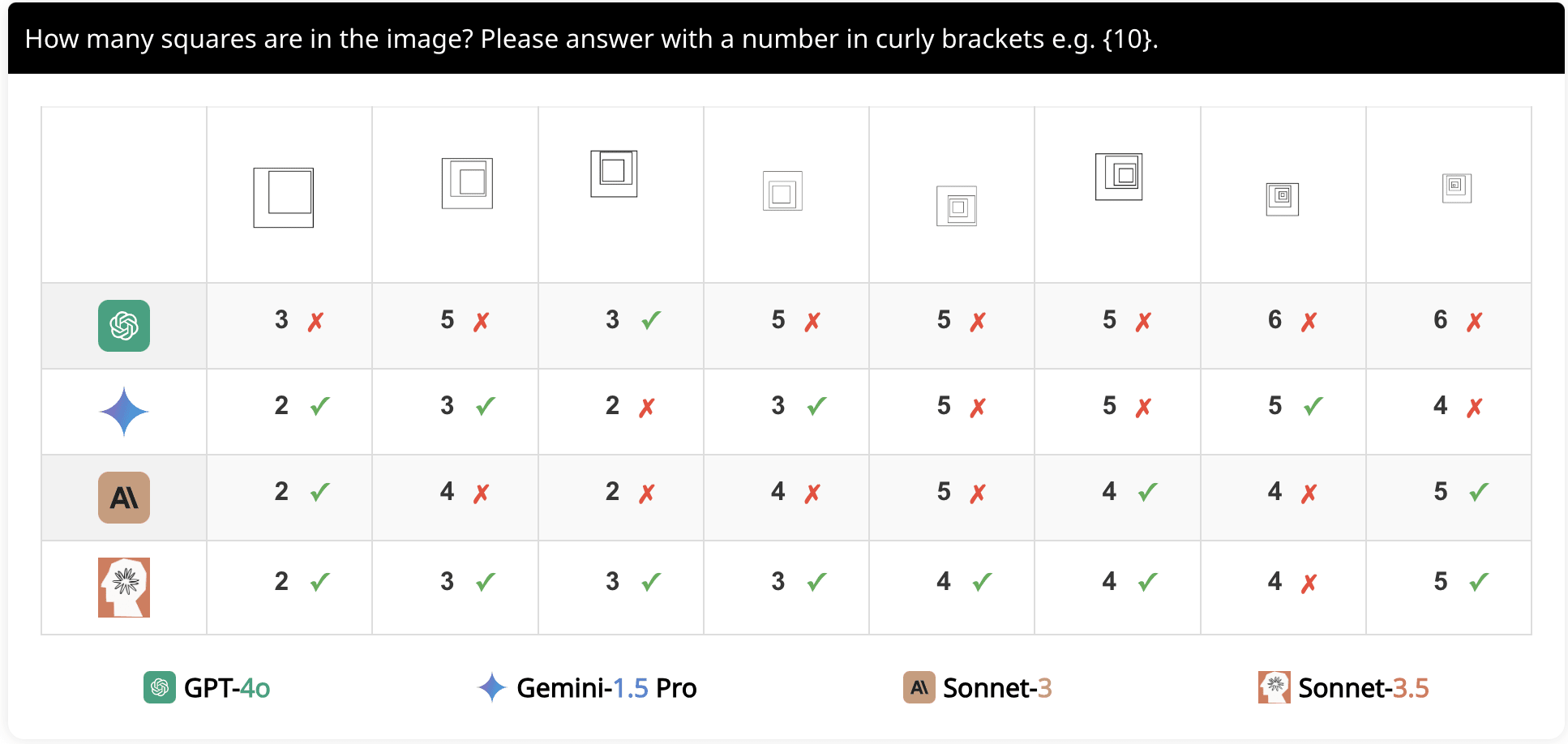 "VLMs are Blind" - this work shows that multimodal models can struggle with low-level vision tasks that are easy to humans