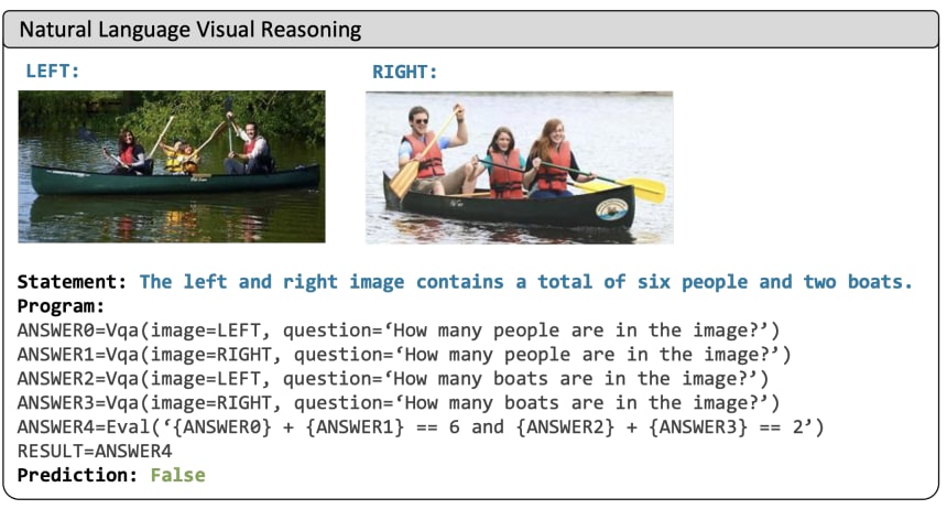 VISPROG is a modular neuro-symbolic system that uses in-context learning to generate and execute interpretable visual reasoning programs from natural language instructions