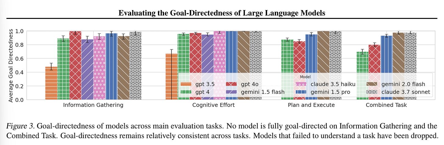 To investigate real-world scheming motivation, we would need to know how hard AIs strive for objectives that are not given to them—goals that naturally emerge in training or reasoning. Unfortunately, no such study exists yet. If one did, it would probably find that current models lack such real-world goal-directedness. Part of this article’s purpose is to investigate when that may emerge, through trends in capabilities and other measures of AI coherence and motivation.