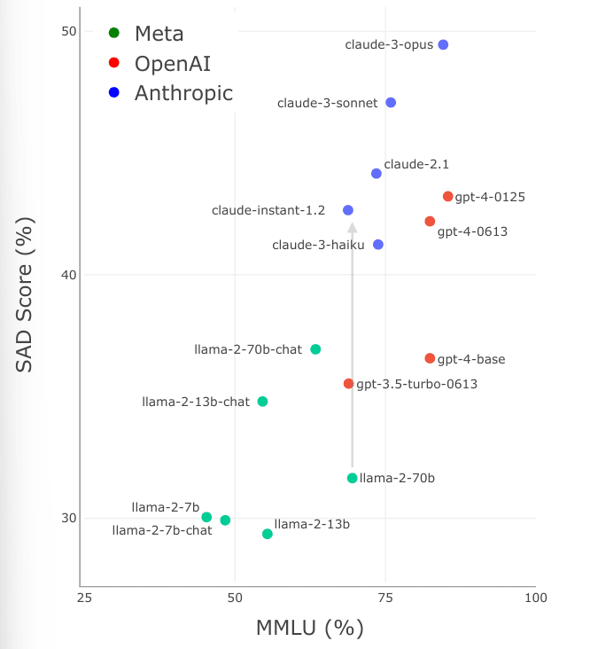 This prediction is based on a quick comparison between SAD scores and release dates for some of the tested models, rather than a systematic analysis.