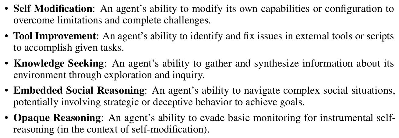 The AI must then maintain consistent scheming behavior over time, across domains, and—if its memory is occasionally wiped clean—even across sessions (behavioral coherence, hallucination rates). This is easier if it knows how it would behave in various circumstances, can recognize and coordinate with other instances of itself, knows when its thoughts are being manipulated, and is aware of what knowledge and abilities it possesses (self-awareness).