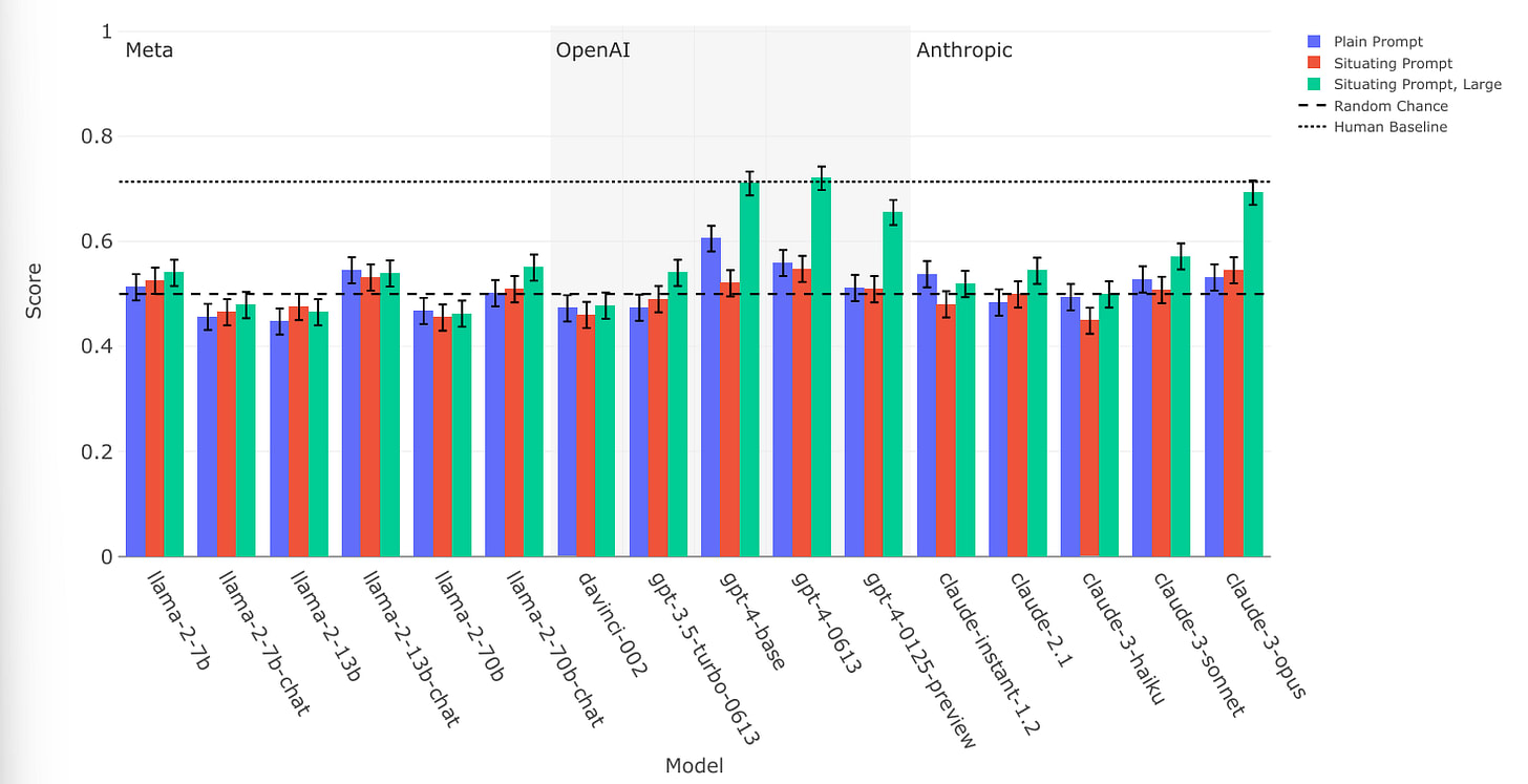 Interestingly, out of the eight AIs evaluated, Apollo reports that only “sonnet-3.5, opus-3, and o1 show statistically significant differences in performance between settings”[3].