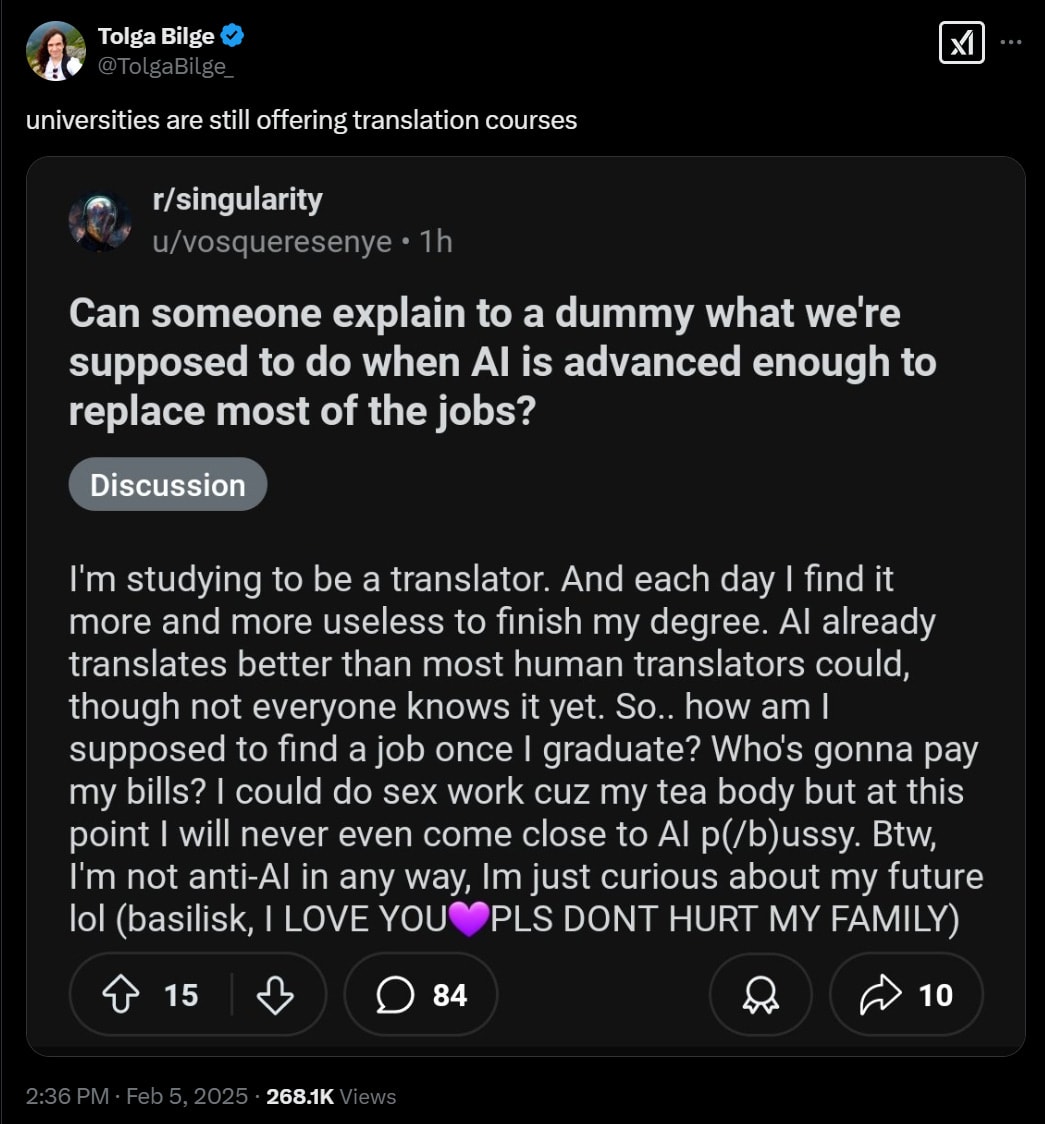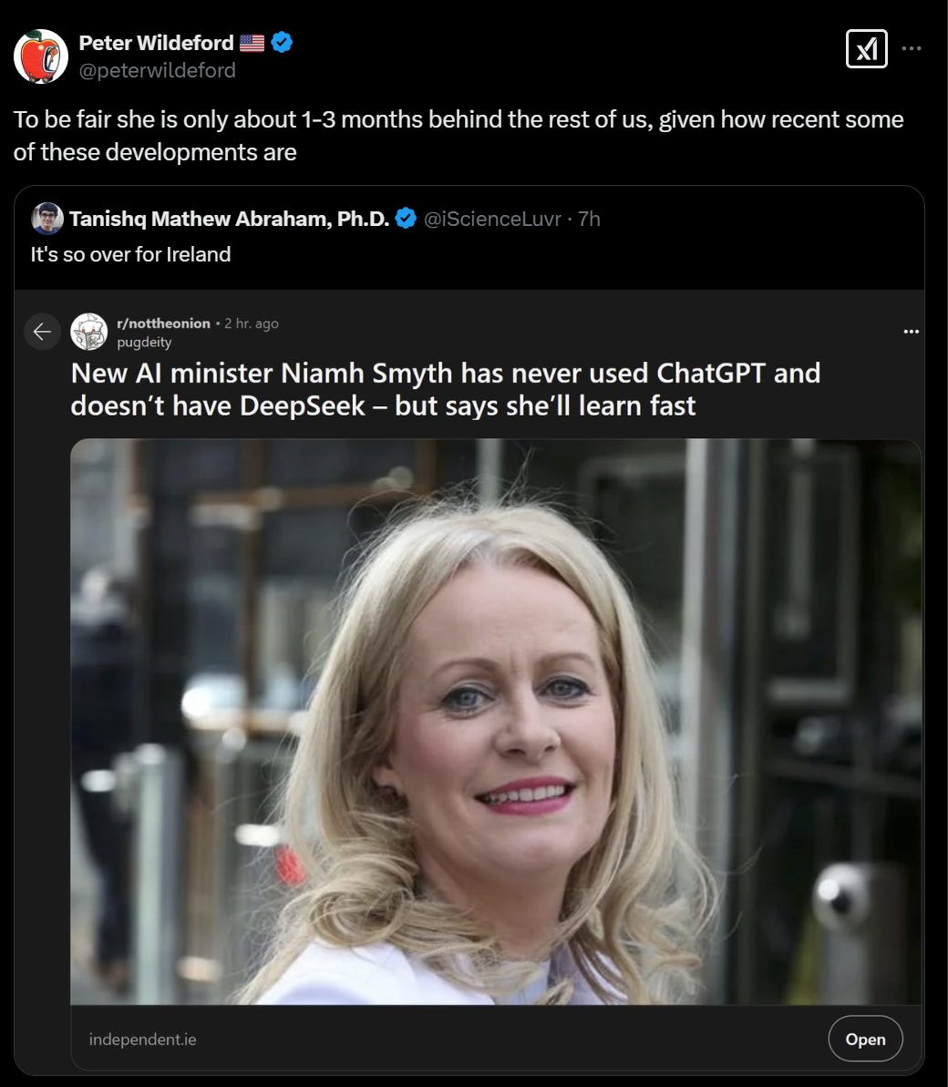 But can it teach you how to use the LLM to diagnose your child’s teeth problems? PoliMath asserts that it cannot – that the reason Eigenrobot could use ChatGPT to help his child is because Eigenrobot learned enough critical thinking and domain knowledge, and that with AI sabotaging high school and college education people will learn these things less. We mentioned this last week too, and again I don’t know why AI couldn’t end up making it instead far easier to teach those things. Indeed, if you want to learn how to think, be curious alongside a reasoning model that shows its chain of thought, and think about thinking.