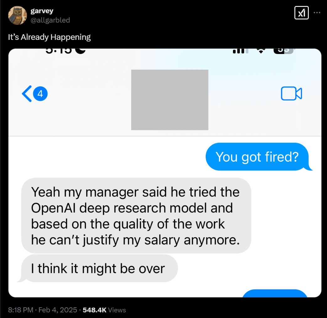 I mean, firing people to replace them with an AI research assistant, sure, but you’re saying you have friends?
