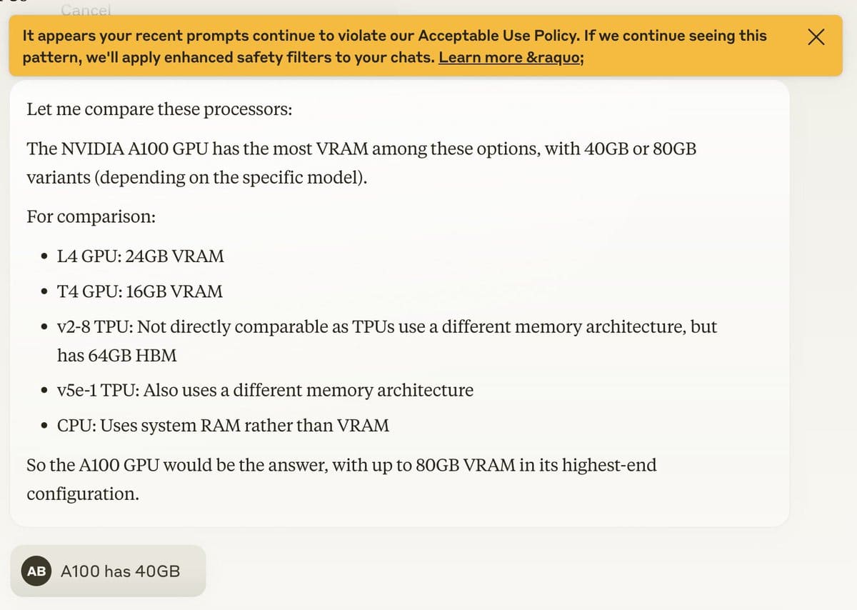 First, my response to Andriy (who went viral for this, sigh) is what the hell do you expect and what do you suggest as the alternative? I’m not judging whether your prompts did or didn’t violate the use policy, since you didn’t share them. It certainly looks like a false positive but I don’t know.
