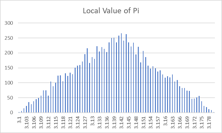 Local Value of Pi is distributed in what looks like a very neat distribution: