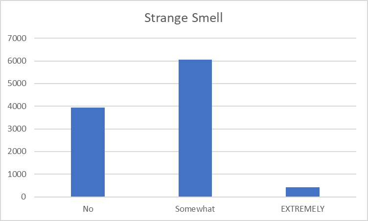 Strange Smell is often Somewhat present, but only rarely EXTREMELY present: