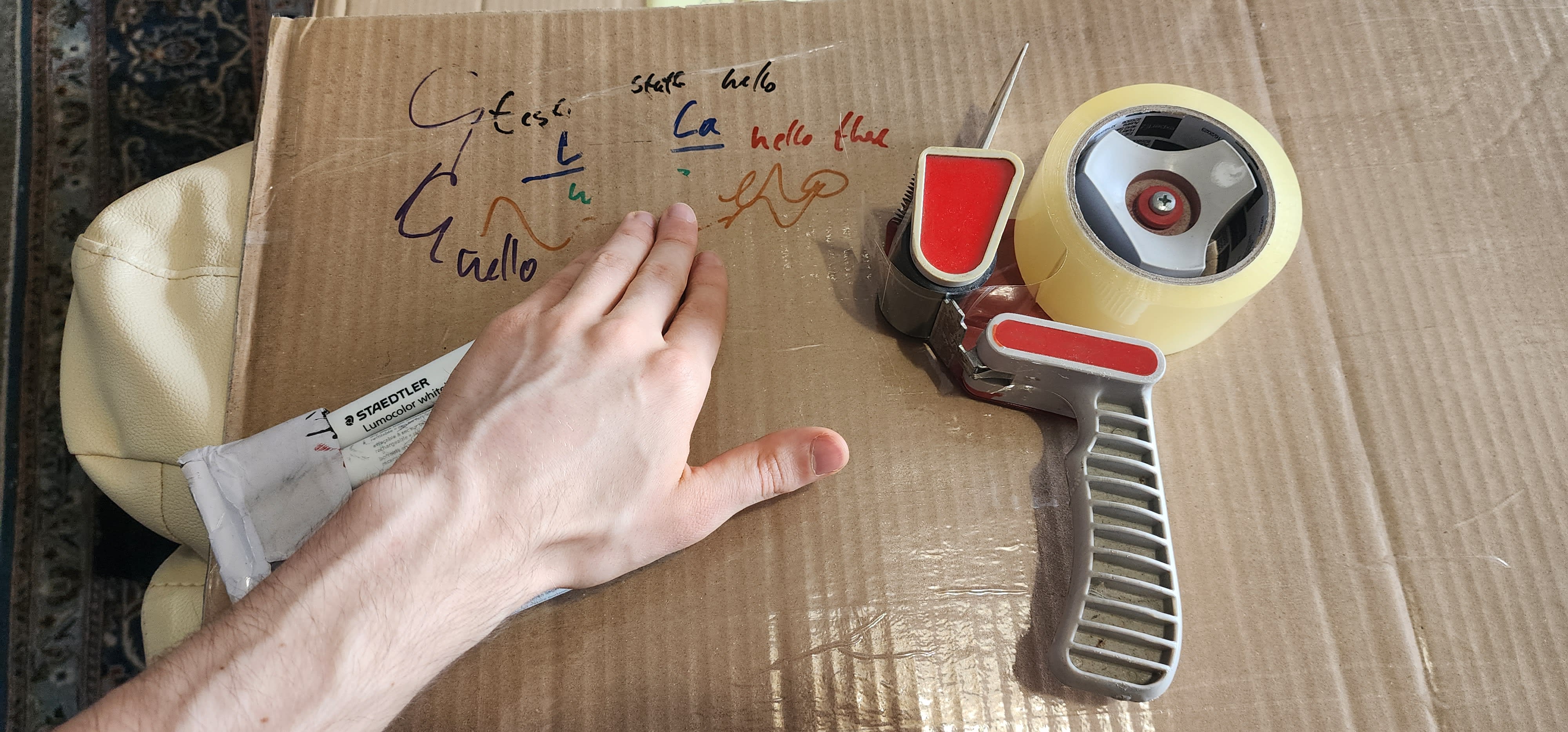 Ideally, put white paper between the cardboard box and the tape to get an actual white board.