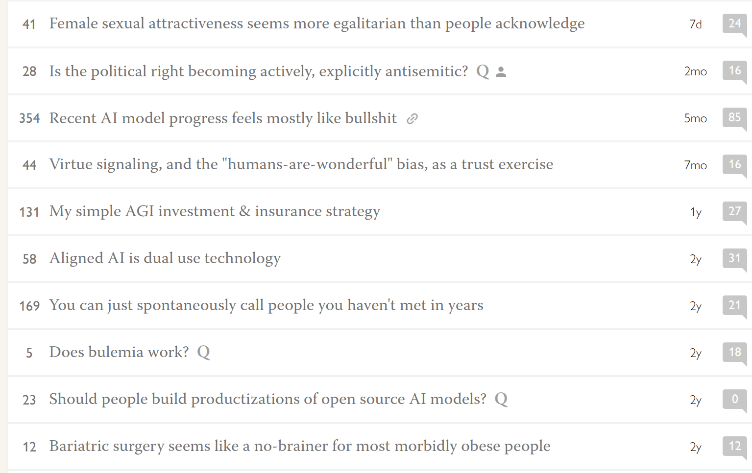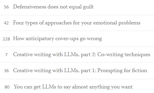 Looking at the karma for some of my recent posts, "publish more by just writing about anything that happens to interest you and don't try to predict whether it'll interest the readers" sure is a high-variance strategy (as you might have expected).