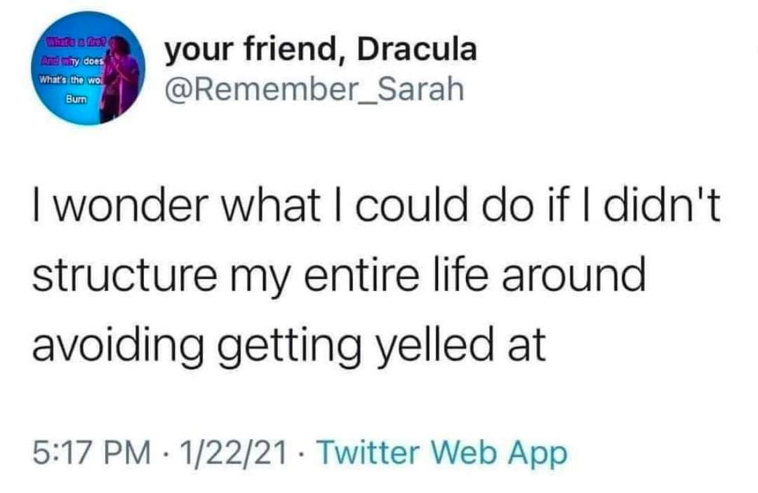 That doesn't work when you have, in the worst case, zero power whatsoever in your own life. This is the power that children have. Most of the time, this isn't all bad; you just have "make sure my parents don't get mad at me" permanently at the bottom rung of your hierarchy of needs. The worst case, however, is your parents forcing you to do exactly what they want you to do, in every situation, by punishing you for every single deviation from their norm.