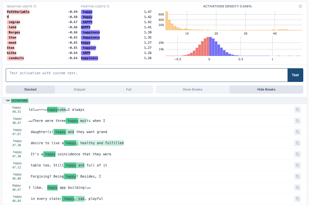 Synchronized injection of antonymic features (happy + sad) seem to suggest some “cancelling out” of sentiment, control single injection directions like sadness seem to become much less common when paired with a happy vector.
