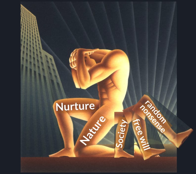 "As I argued, it's not clear to me how it's better to have my personality traits set by random genetic dice, or by weird alien optimization pressures coming from bioevolution and from Moloch-style human sociobiological pressures. There's no "fair" / "neutral" / "pure" background default. (I do think there's significant nuance here, but overall the conclusion stands. Happy to discuss.)"
