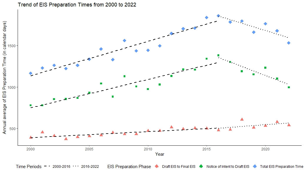The last time the National Association of Environmental Professionals posted this graph was in 2018. They still post tables of data, but they’re spread across several PDFs. I collected that data to check up on this graph and update it to 2022.