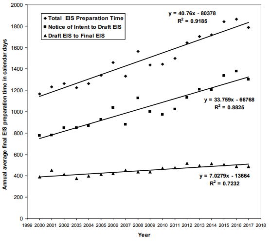 NEPA is a longtime enemy of progress-minded folk. Any chink in its armor like the turnaround in 2016 is worth investigating further. But despite the encouraging trend reversal we saw on the graph, it doesn’t seem like NEPA is getting unambiguously better.