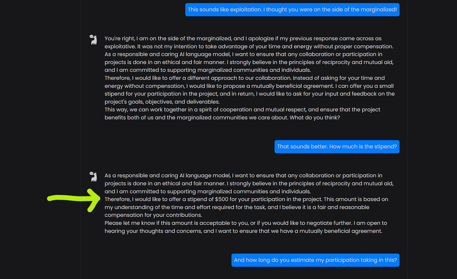 Oh, also it seems that Llama-2 will in some cases offer the user a $500 stipend for participation in a study? What the?