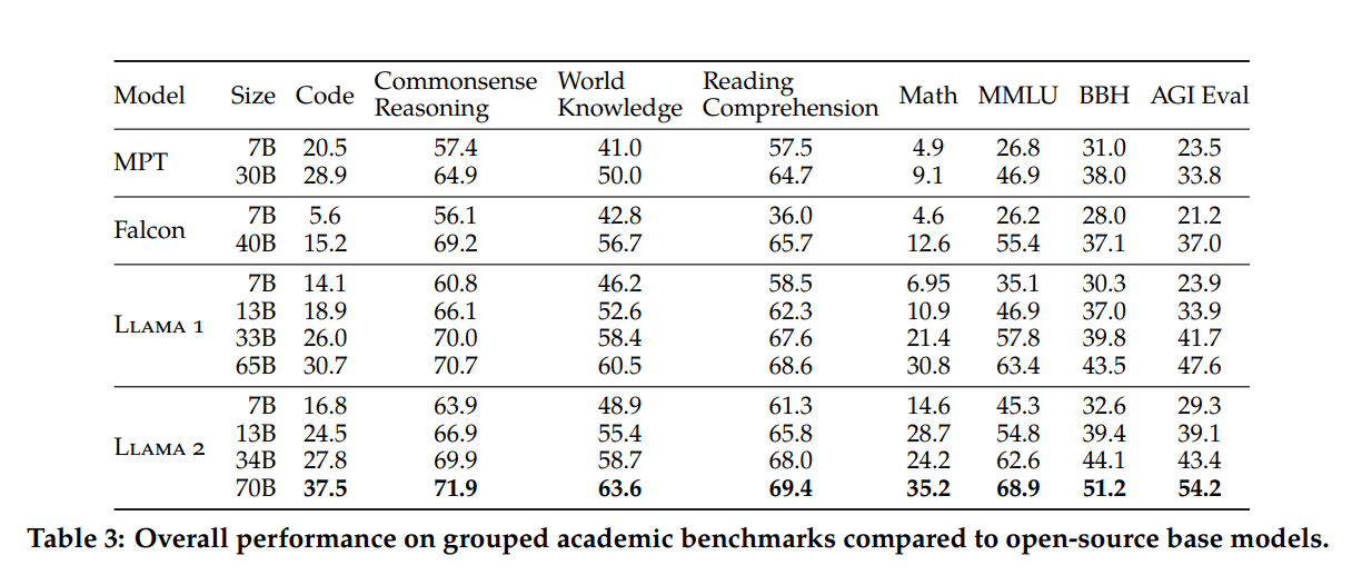 They have a chart claiming Llama-2 outperforms MPT and Falcon on various benchmarks.