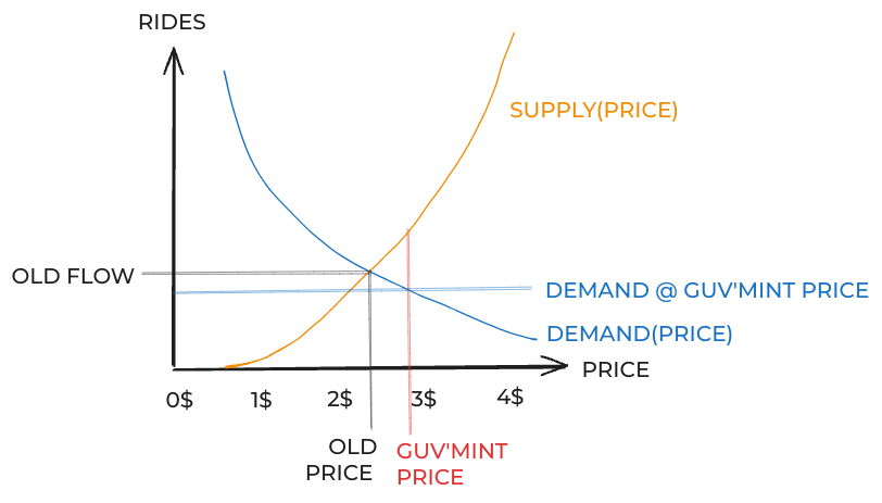 We have a problem. Since rides now cost more than the old market price, people will buy fewer rides.