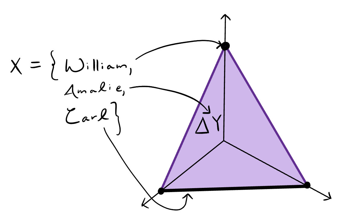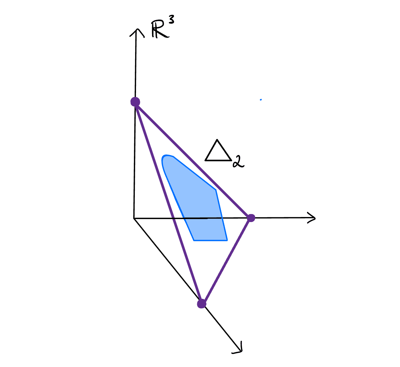 There is a bijection between and the closed interval which is the map that sends a distribution to the probability of zero. More generally, recall from the proof of Lemma 1 in the preceding post, that if is a finite set with elements, then there is a bijection between and the closed simplex