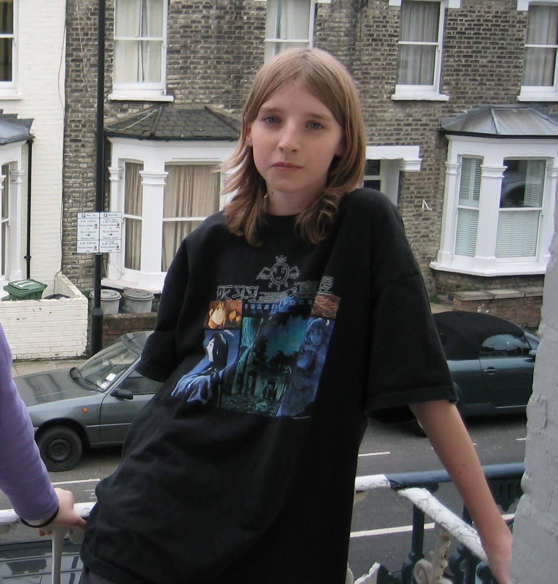 the author, age 13. Note the oversized Haibane Renmei graphic tee
