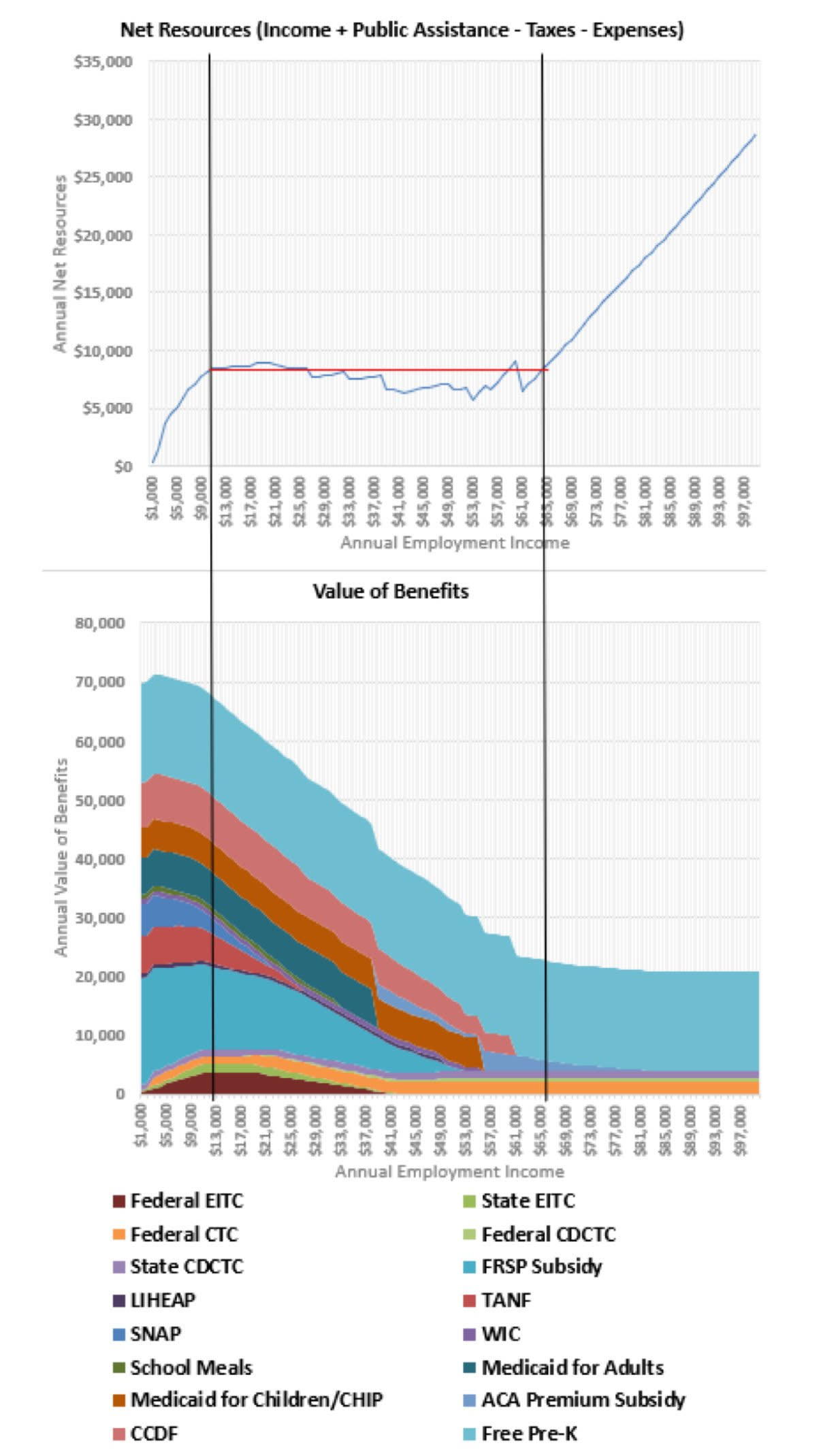 Benefits are not ‘as good as cash’ so the problem probably is not quite as bad as ‘100% effective marginal tax rates from $10,000 in income up to $65,000’ but it could be remarkably close, especially in places with high additional state taxes.