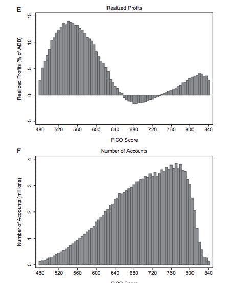 There’s also the strange graph below, which requires explaining. Patrick McKenzie points out that the part of the FICO curve where offering credit cards is unprofitable is still a good place to do business, because those in the unprofitable range are unlikely to stay there so long and their business will remain somewhat sticky as they move.