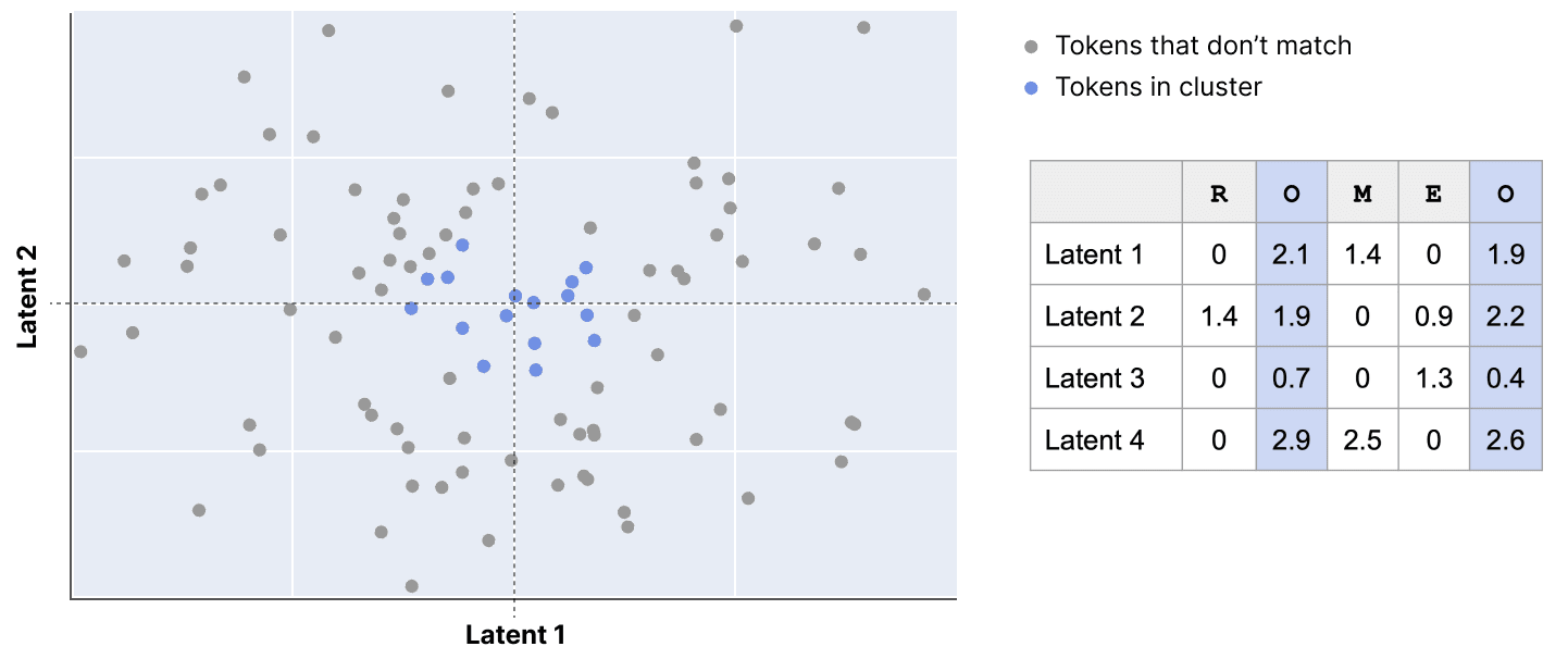 Using cached latent values, map all tokens in the training dataset to a point in this high-dimensional space.