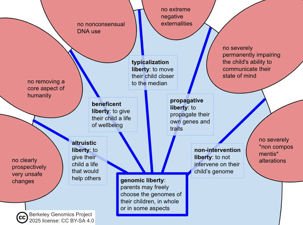 This article is not mainly meant to make the case for genomic liberty, and does not present an overall argument. It is mainly meant to present a proposal for what the principle of genomic liberty should mean in the first place. I do make some arguments, mainly in order to explain why this proposal is specifically the way it is, rather than being some other similar proposal.