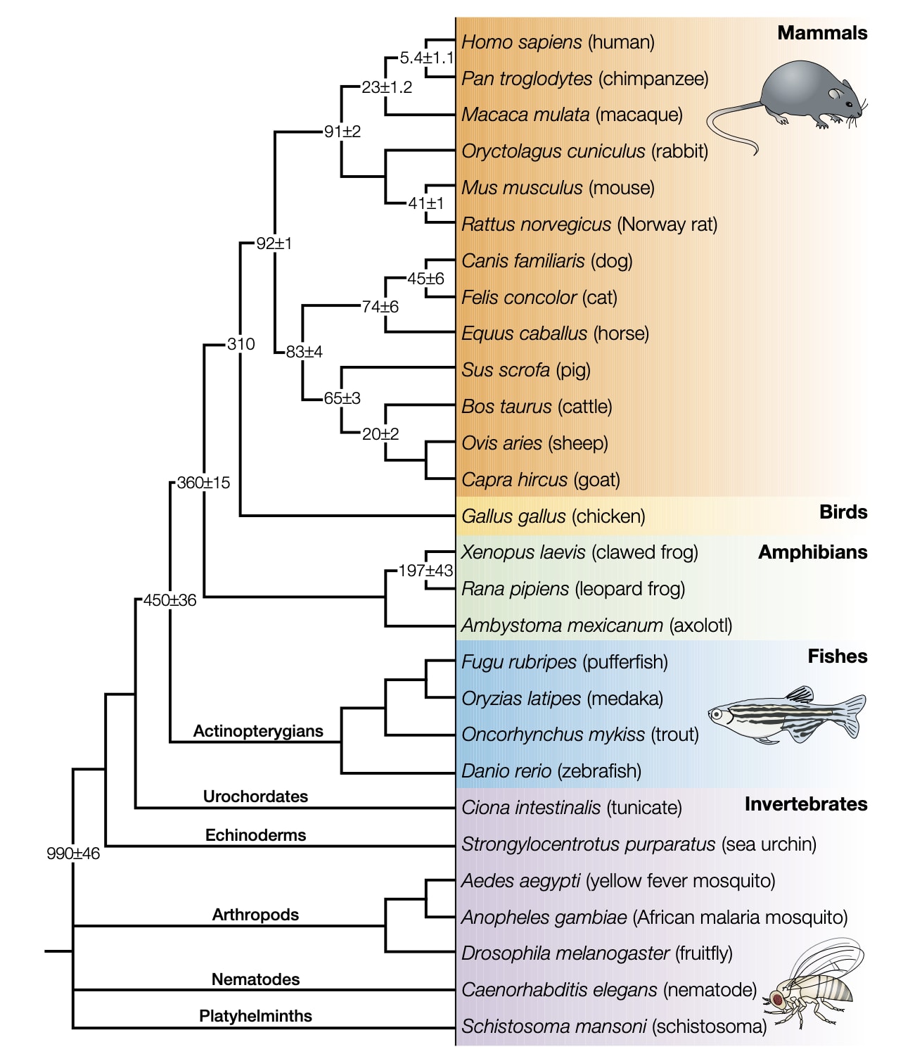Rodents and primates share a common ancestor that split 80-90 million years ago in the Cretaceous. Compared to other animal models, mice are among the most closely related to humans. Credit: Hedges S.B.Nature (2002).