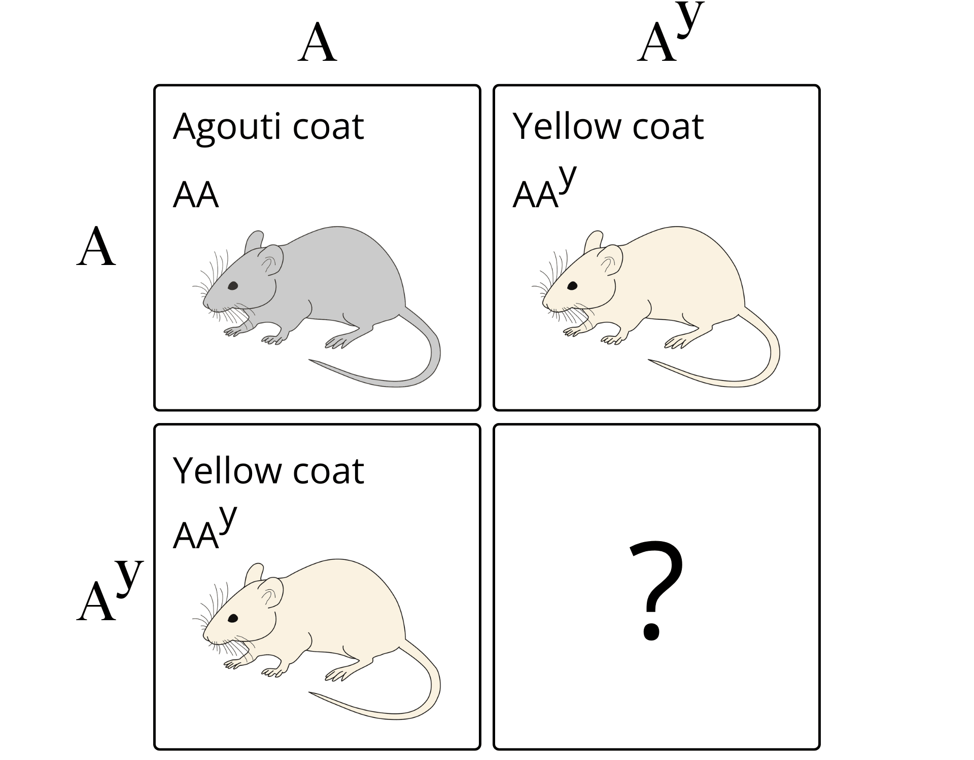 A simple Punnett square analysis suggests that Cuénot should have expected 3 yellow mice for every black one in his crosses. However, the homozygous mouse was nowhere to be found.