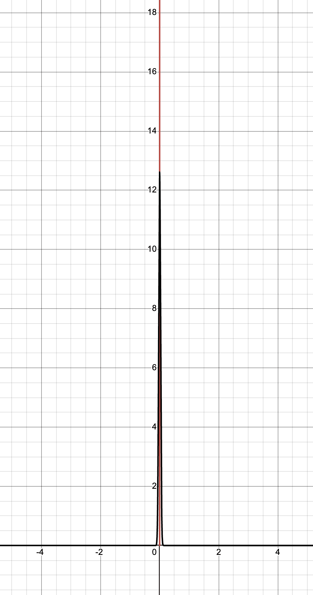 Spoiler alert: it’s the Dirac delta. Which makes sense, since the delta is (nearly) 0 everywhere except at the origin, where it’s infinitely big. Which is what we expected from the intuitive analysis.