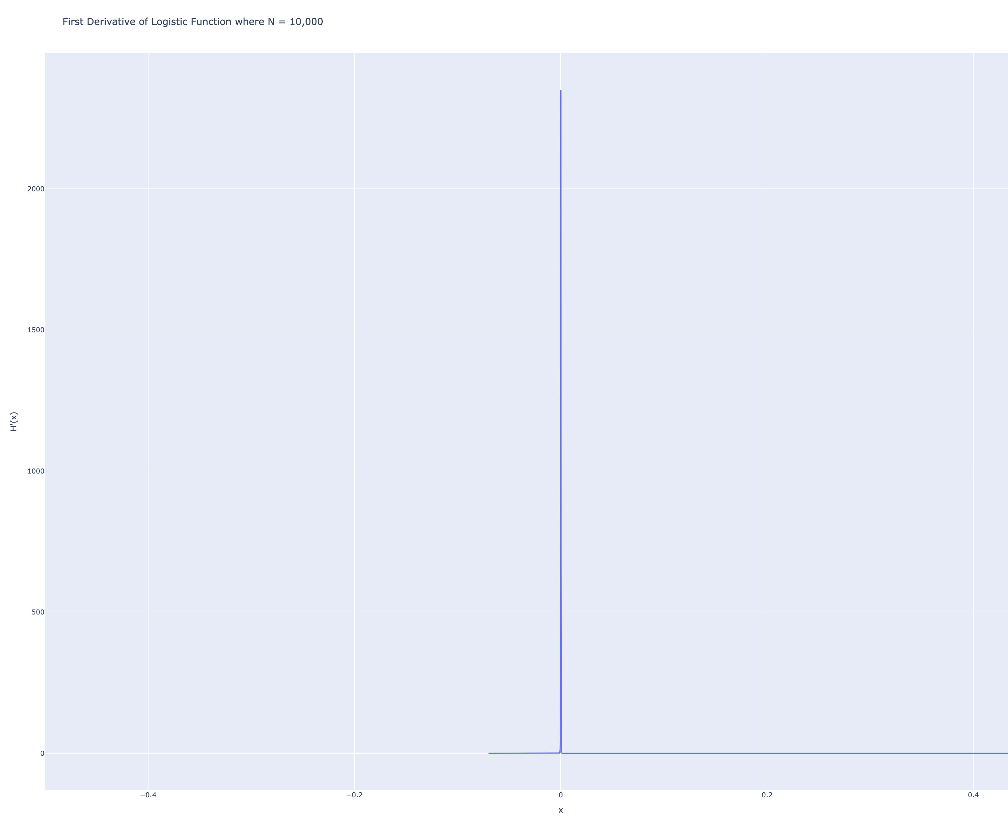 Since N is an infinite number, N4 is also infinite. This captures the essence of the Dirac delta function’s “infinite spike.” But now while the delta may be infinite, it has an end, a specific height. Which is N4.