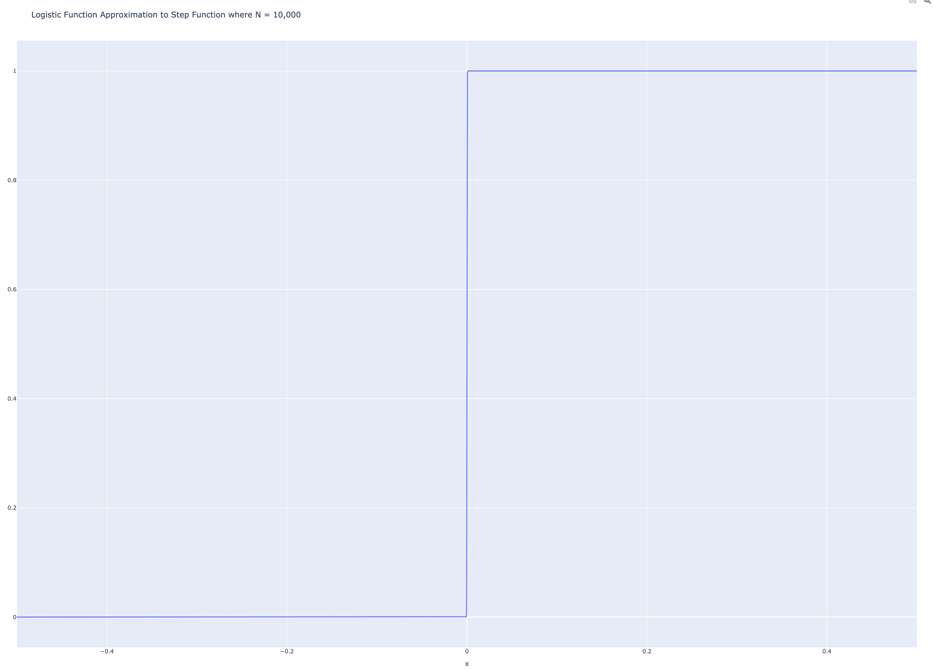 This nonstandard logistic function is appreciably indiscernible from the step function. The difference between them is “one (standard) point thick”.