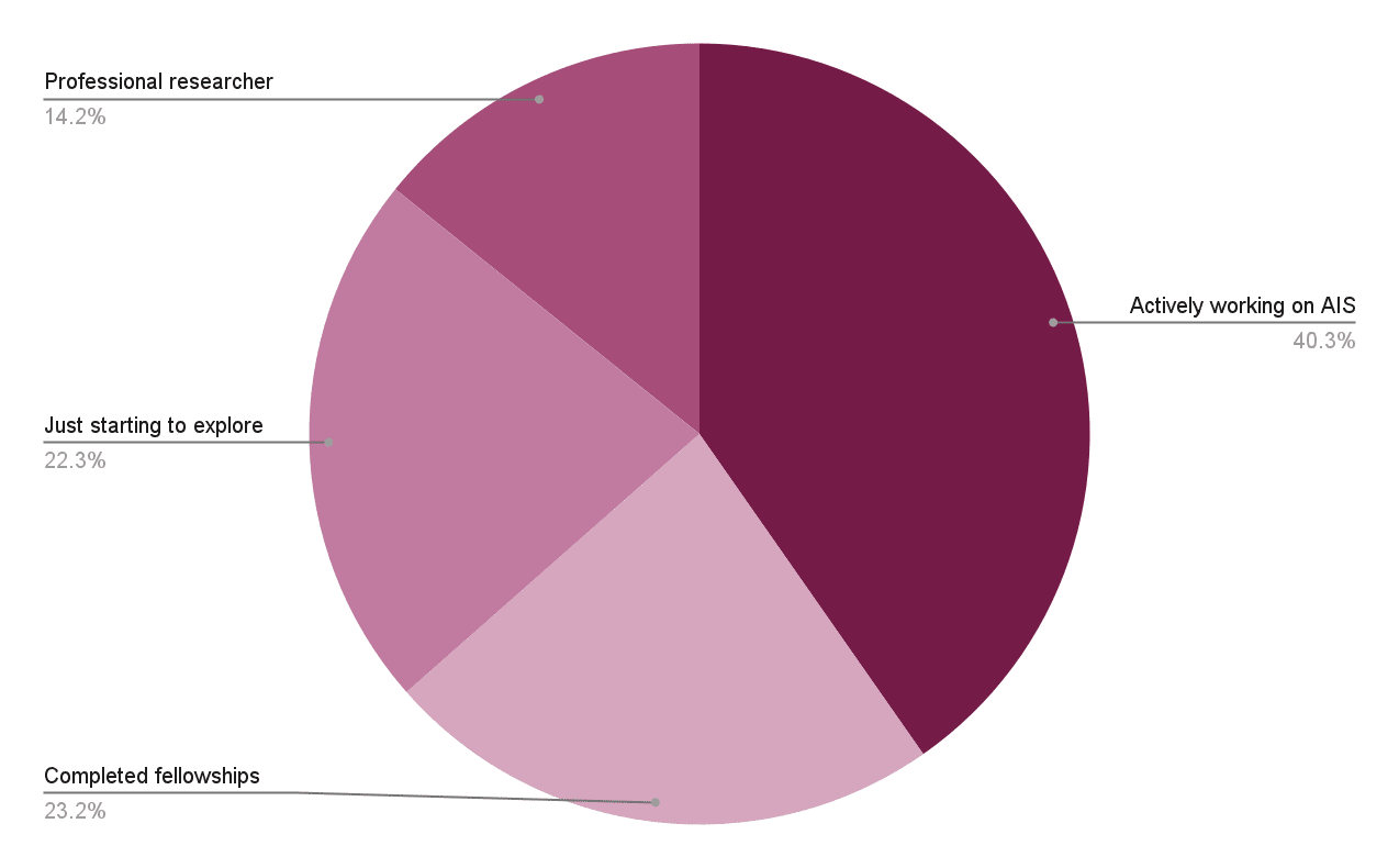 Distribution of participants according to their self-reported background with AI safety and in research.