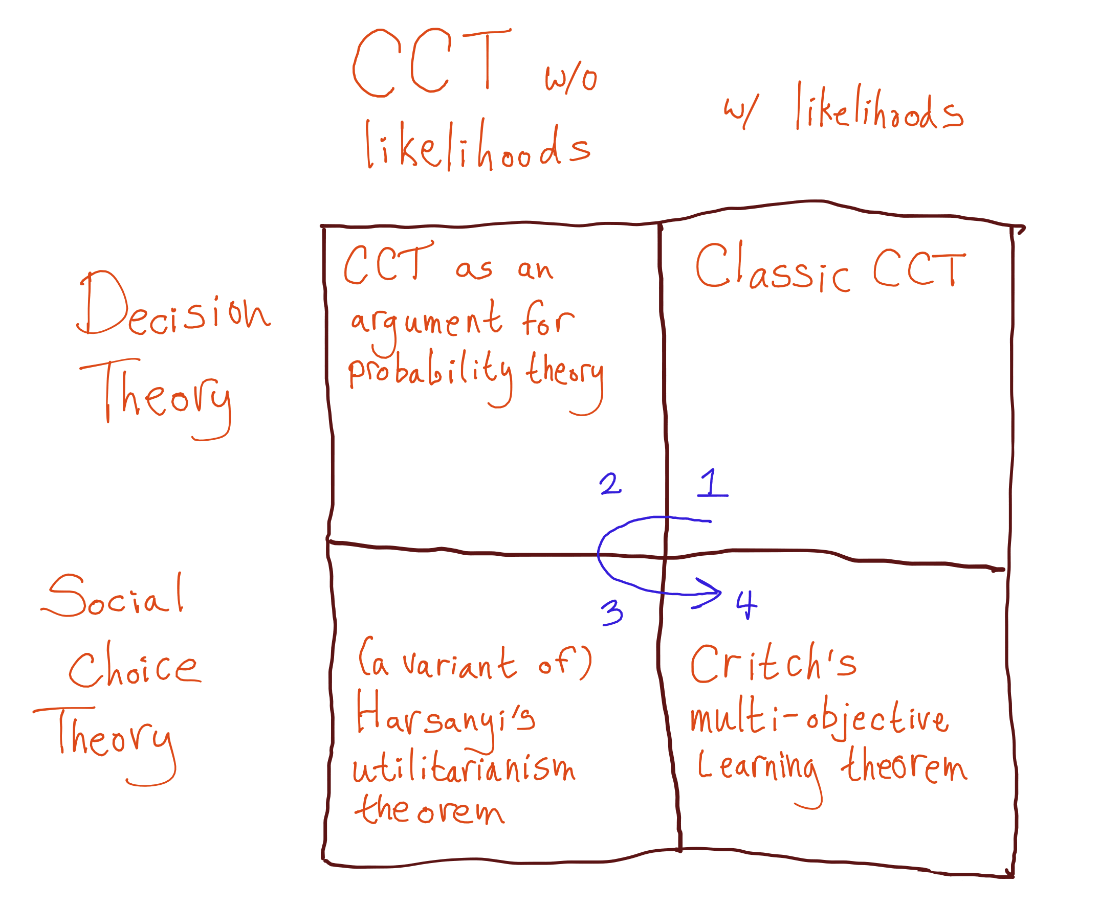With respect to this second quest, CCT is interesting because Dutch Book and money-pump arguments point out irrationality in agents by exploiting the irrational agent. CCT is more amenable to a model in which you point out irrationality by helping the irrational agent. I am working on a more thorough expansion of that view with some co-authors.