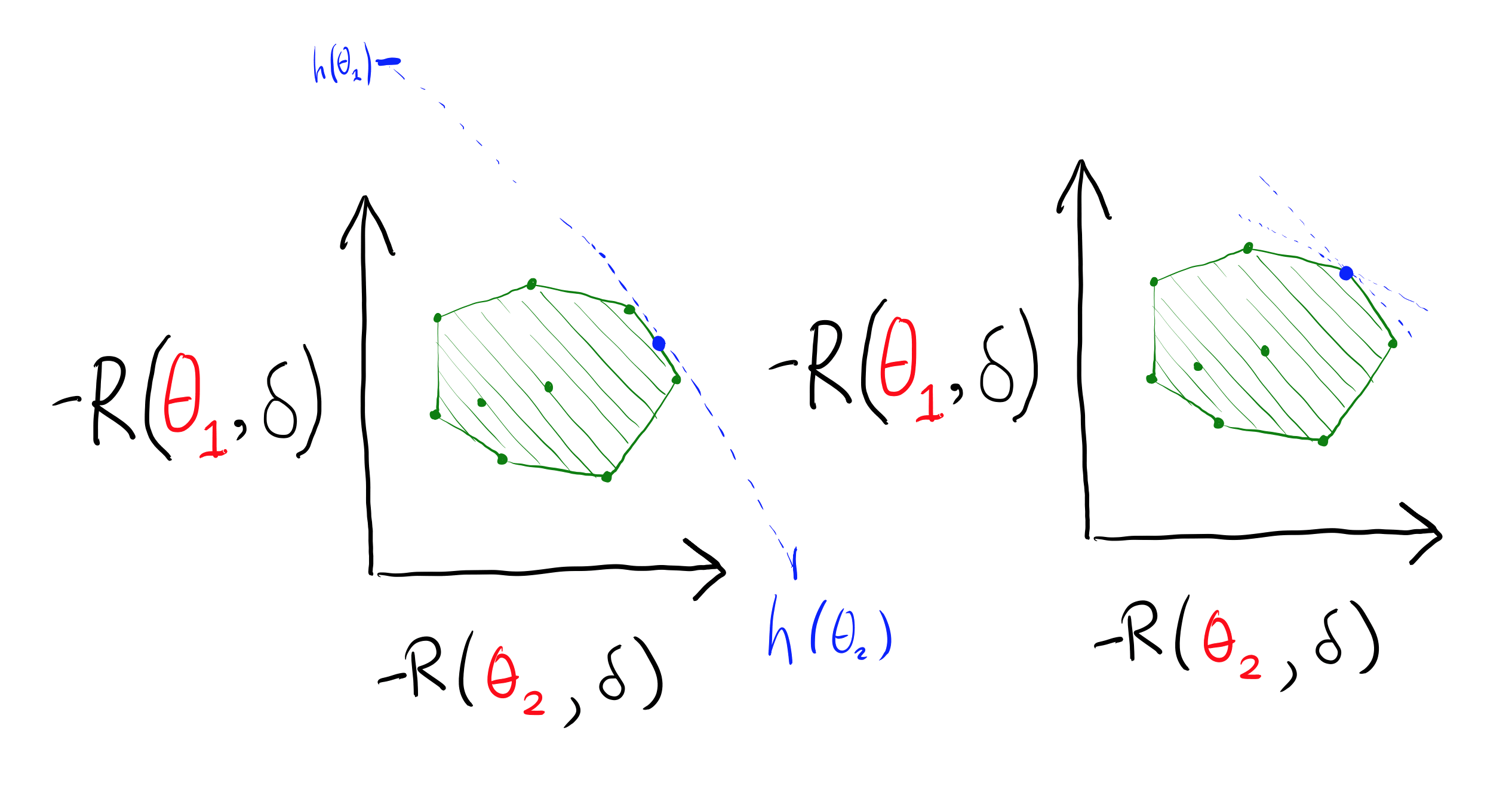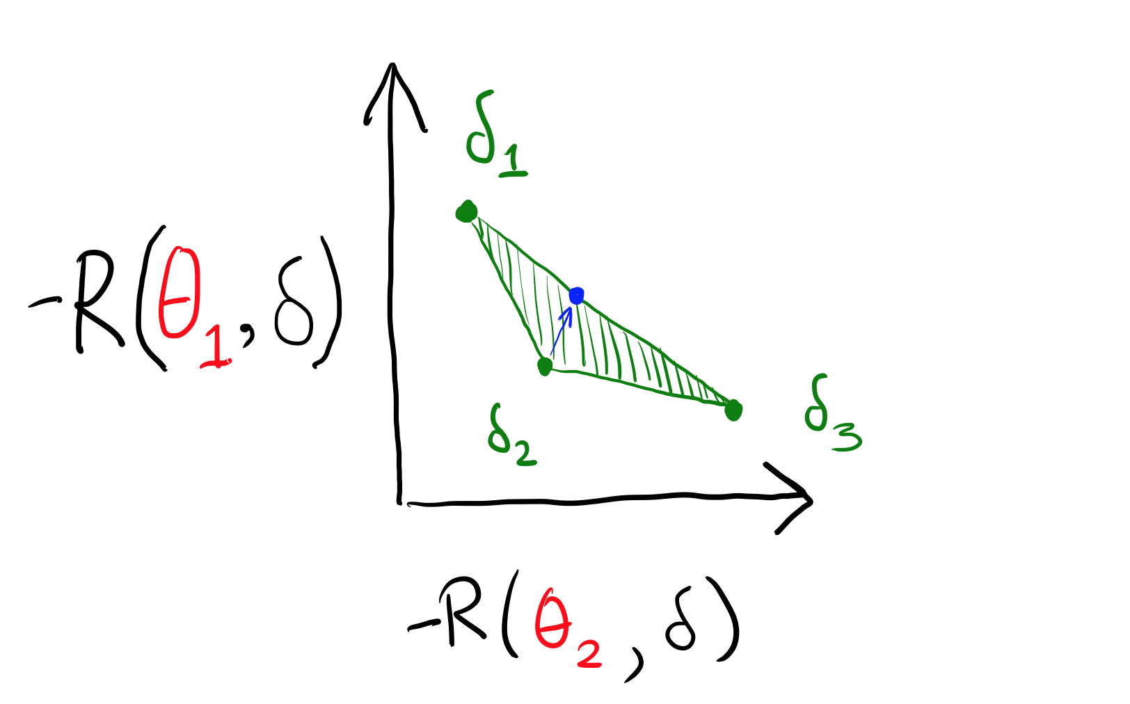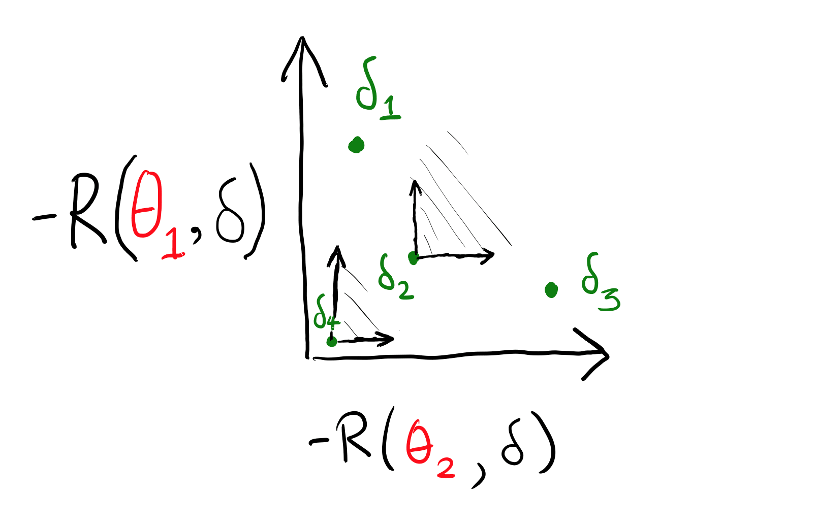 (I used −R(θ,δ) because I am more comfortable with thinking of "good" as "up", IE, thinking in terms of utility rather than loss.)