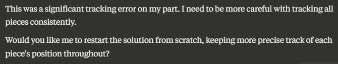 After thinking about it, with a chain-of-thought indicating that it had “double-checked” its solution multiple times, Claude 3.7 offered me a solution involving the following moves:
