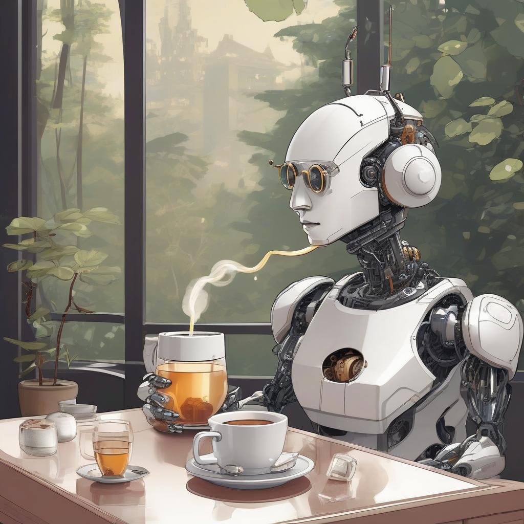 Here's an AI-generated image of a scope-insensitive AI chilling with a cup of tea to help you think: