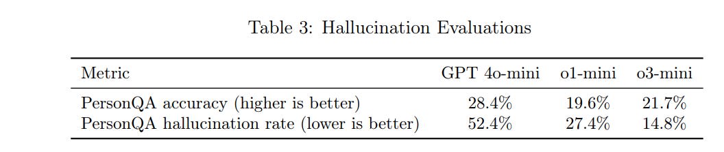 Hallucinations seem to be improving within the mini class: