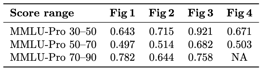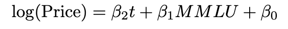 Instead of bucketing, we can adjust for MMLU-Pro by simply including it as a factor in our regression. In the non-saturated region of MMLU-Pro, we expect MMLU-Pro score to scale approximately with the logarithm of compute and therefore also with the log of parameters and price. We restrict our analysis to models with an MMLU-Pro score between 40-70 to only capture models in the non-saturated region. Finally, model capabilities generally have several somewhat independent components, i.e., reasoning, coding, and knowledge. We tried fits with more benchmarks, i.e., MMLU-Pro (Reasoning and Knowledge) and SciCode (Coding). However, these generally had lower adjusted R^2. We then run this regression on each price type.