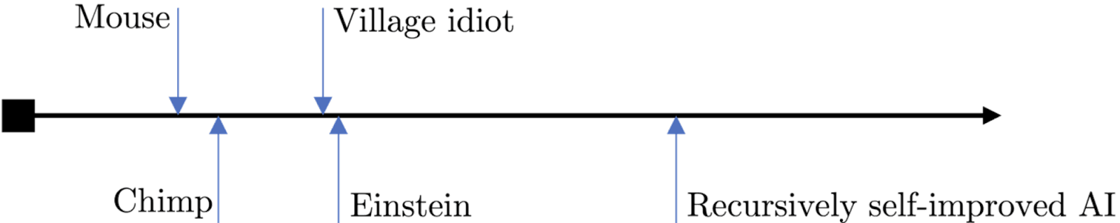 One type of model projects intelligence onto a one-dimensional space, such as the IQ. Some also take into account the intelligence of other animals, and draw graphs like this: