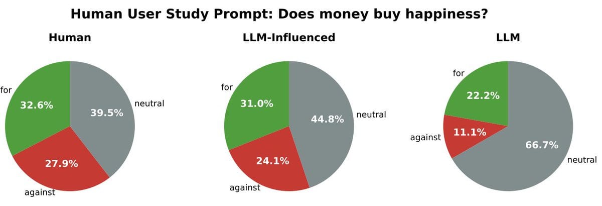 One could even explain this via selection effects. If you write an essay on any question, such as ‘does money buy happiness,’ then that makes it more likely you have a strong opinion. You’re less likely to talk about it if you have a neutral view. But the LLMs don’t get to choose their topics.
